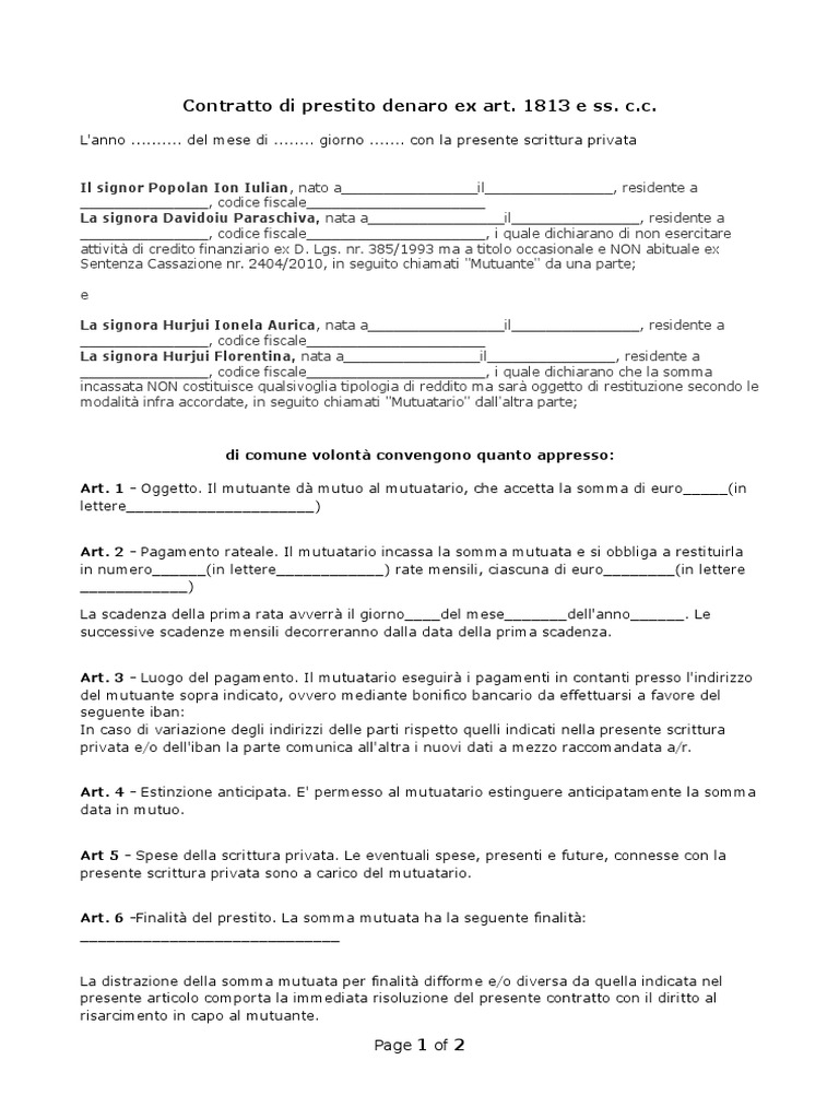 Scrittura privata prestito infruttifero tra privati fac simile - Moduli.it Fac simile di scrittura privata con cui regolare termini e condizioni di un prestito in denaro che familiari, parenti o amici possono concedersi fra loro ... Prestito infruttifero tra privati: cos'è e come funziona Aggiornato il 23/08/2022 da Gaetano Matarese. Viene definito "Prestito Infruttifero" una specifica tipologia di finanziamento che interessa i privati, e che quindi non coinvolge organismi di credito o finanziarie.. Attraverso il termine privato facciamo riferimento ad una categoria ampissima di persone, dai familiari ai soci in ambito lavorativo, fino a conoscenti ed amici. ▷ Fac Simile Contratto Di Prestito Tra Privati Fac Simile Contratto Di Prestito Tra Privati - Rating 4 - 6 Opinioni - Modificabile e disponibile - Formati: Microsoft WORD (.docx)